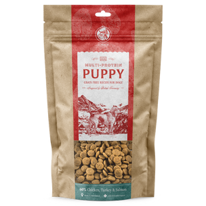 Discover our truly British, premium grain free and natural foods for young dogs. Our recipes are designed to allow your puppy or junior dog to get the best start in life; loaded with sustainably sourced meat, supplying quality protein growth and carefully balanced with calcium and phosphorus for bone and skeletal development. Suitable for puppies with allergies, intolerances and sensitivities.